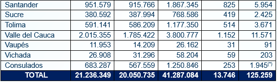 Un total de 41.287.084 colombianos están habilitados para ejercer su derecho al voto en Colombia y el exterior durante las elecciones de Congreso de la República, que se realizarán el próximo 8 de marzo. De los ciudadanos aptos para sufragar, 21.236.349 son mujeres y 20.050.735 son hombres, quienes podrán votar en 125.259 mesas, distribuidas en 13.746 puestos de votación.