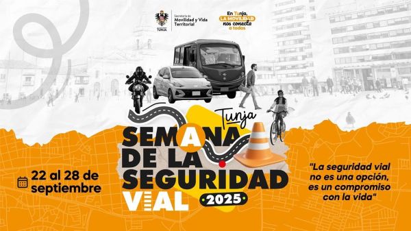 La Secretaría de Movilidad y Vida Territorial invita a todos los tunjanos a participar en la Semana de la Seguridad Vial, que se llevará a cabo del 22 al 28 de septiembre de 2025 en la capital boyacense.