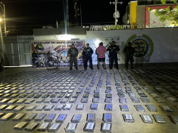 En el marco del Plan de Campaña Ayacucho Plus, soldados del Batallón de Artillería de Defensa Antiaérea N.° 1, orgánicos de la Décima Brigada, en coordinación con la Policía Nacional, lograron en las últimas horas la incautación de aproximadamente 619 kilos de clorhidrato de cocaína en zona rural del municipio de Uribia, La Guajira.