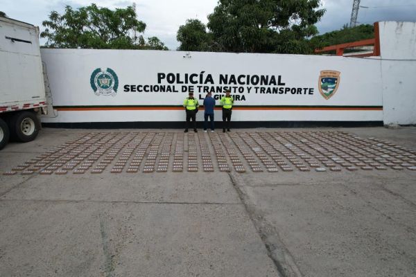 En desarrollo de operativos de control vial y prevención del delito adelantados por la Policía Nacional en el departamento de La Guajira, uniformados adscritos a la Seccional de Tránsito y Transporte lograron la incautación de un importante cargamento de estupefacientes durante labores de registro y verificación realizadas en zona rural del municipio de Riohacha.