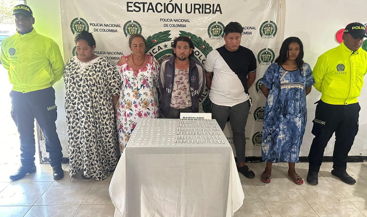 La quinta persona, cuyo nombre es Olga Lucía Epiayu, alias La Tía, fue capturada en flagrancia cuando los funcionarios de la Seccional de Investigación Criminal encontraron en su residencia 121 papeletas de bazuco y 91 cigarrillos artesanales de marihuana.