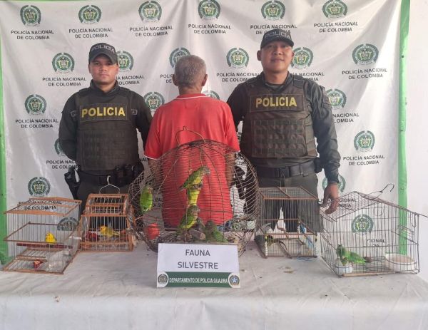 El procedimiento se realizó en la plaza de mercado del municipio de Manaure, donde la patrulla ambiental sorprendió al individuo con 13 aves silvestres, clasificadas de la siguiente manera: 8 cara sucia, 2 canarios costeños, 2 pericos y 1 papayero.